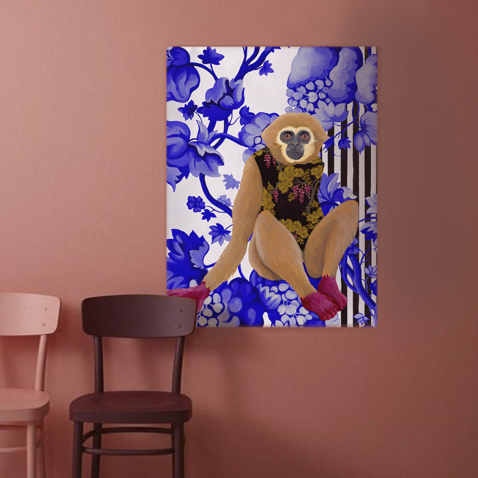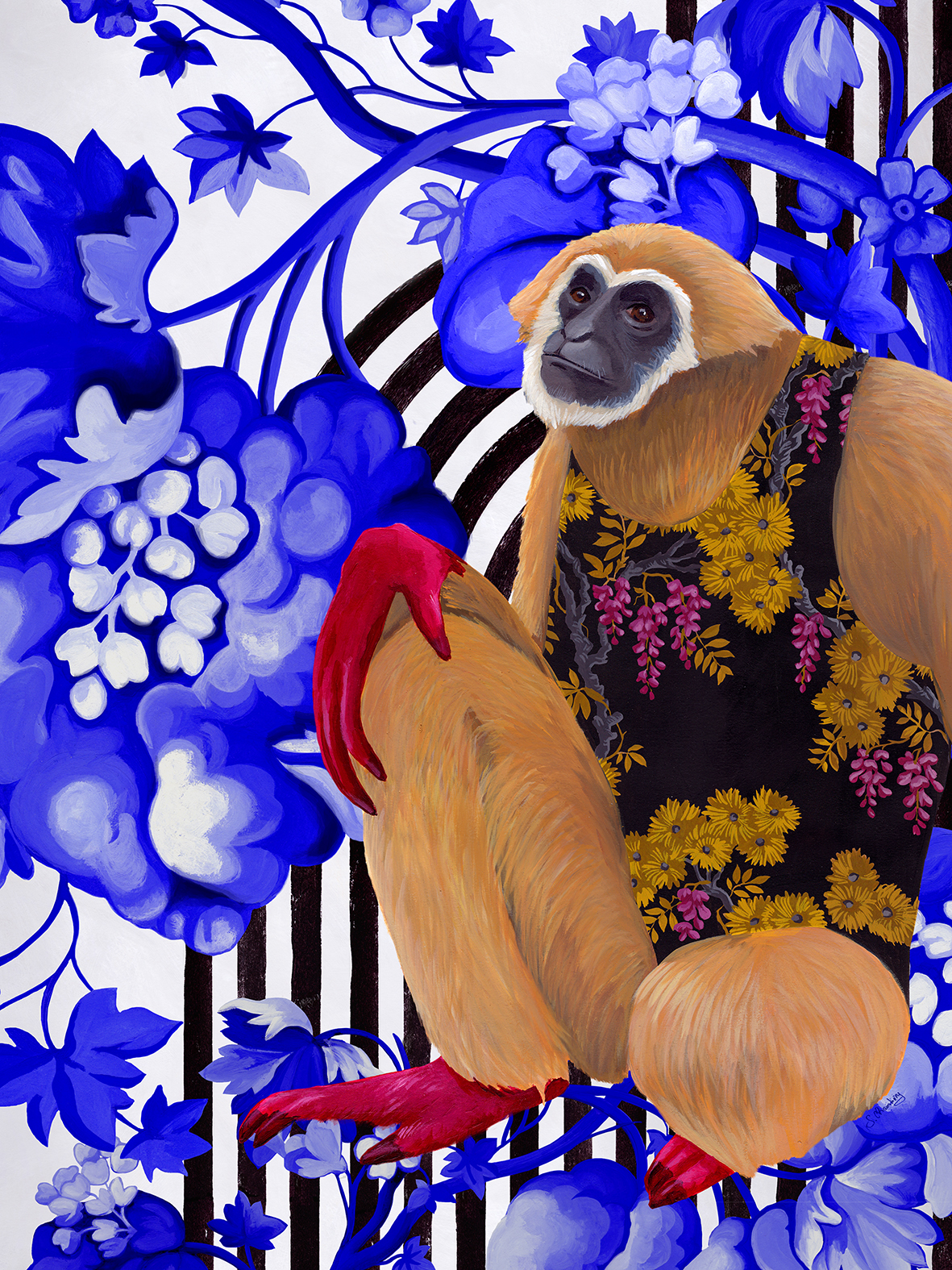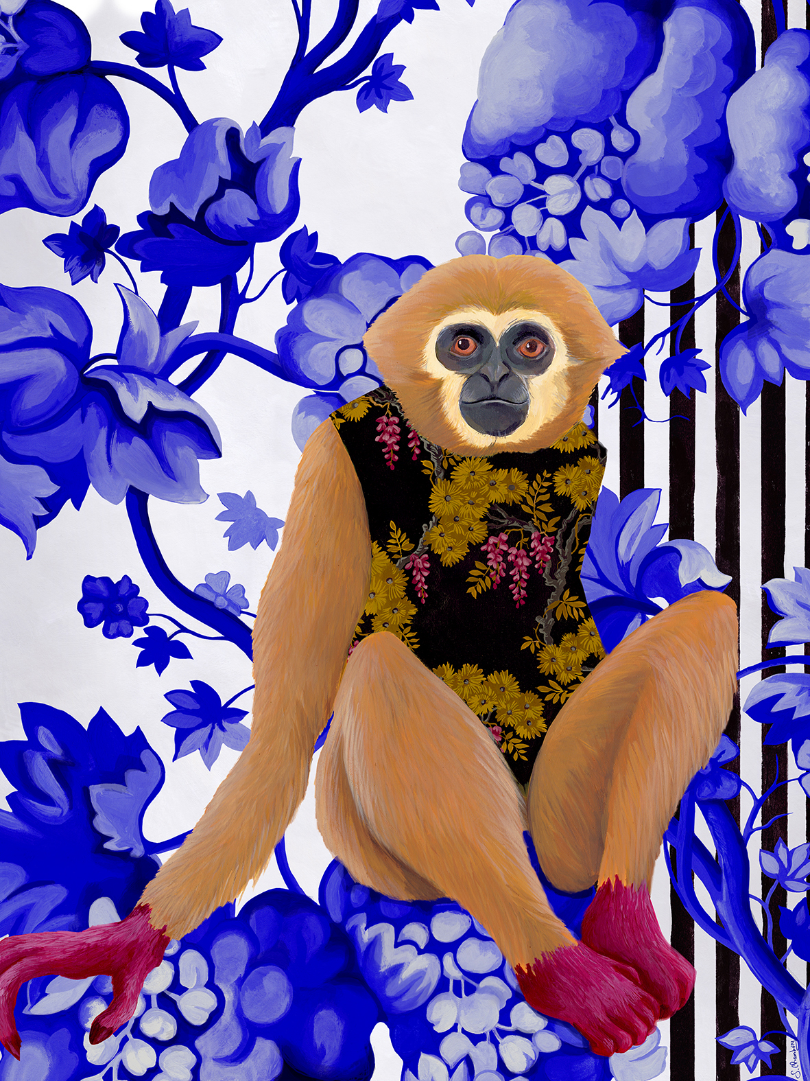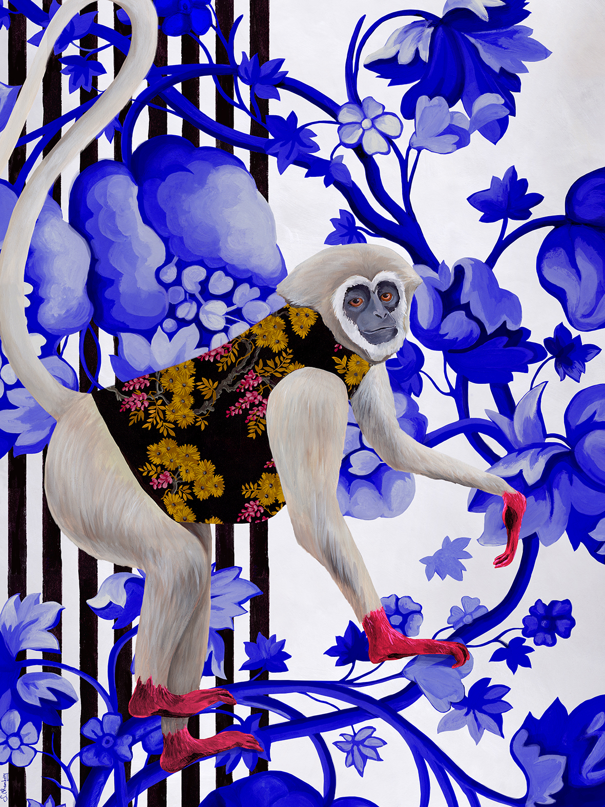 La collection Primate, rend hommage à ces fascinants mammifères, avec un bestiaire chamarré, où se côtoie pêle-mêle, des clins d’oeil à l’Art Contemporain entremêlés d’inspirations Art and Craft. Elle se décline en format PARURES en 60/80cm pour habiller des huisseries, un placard, un trumeau de cheminée où tout simplement un mur, pour les ennoblir et leur donner une touche de caractère.